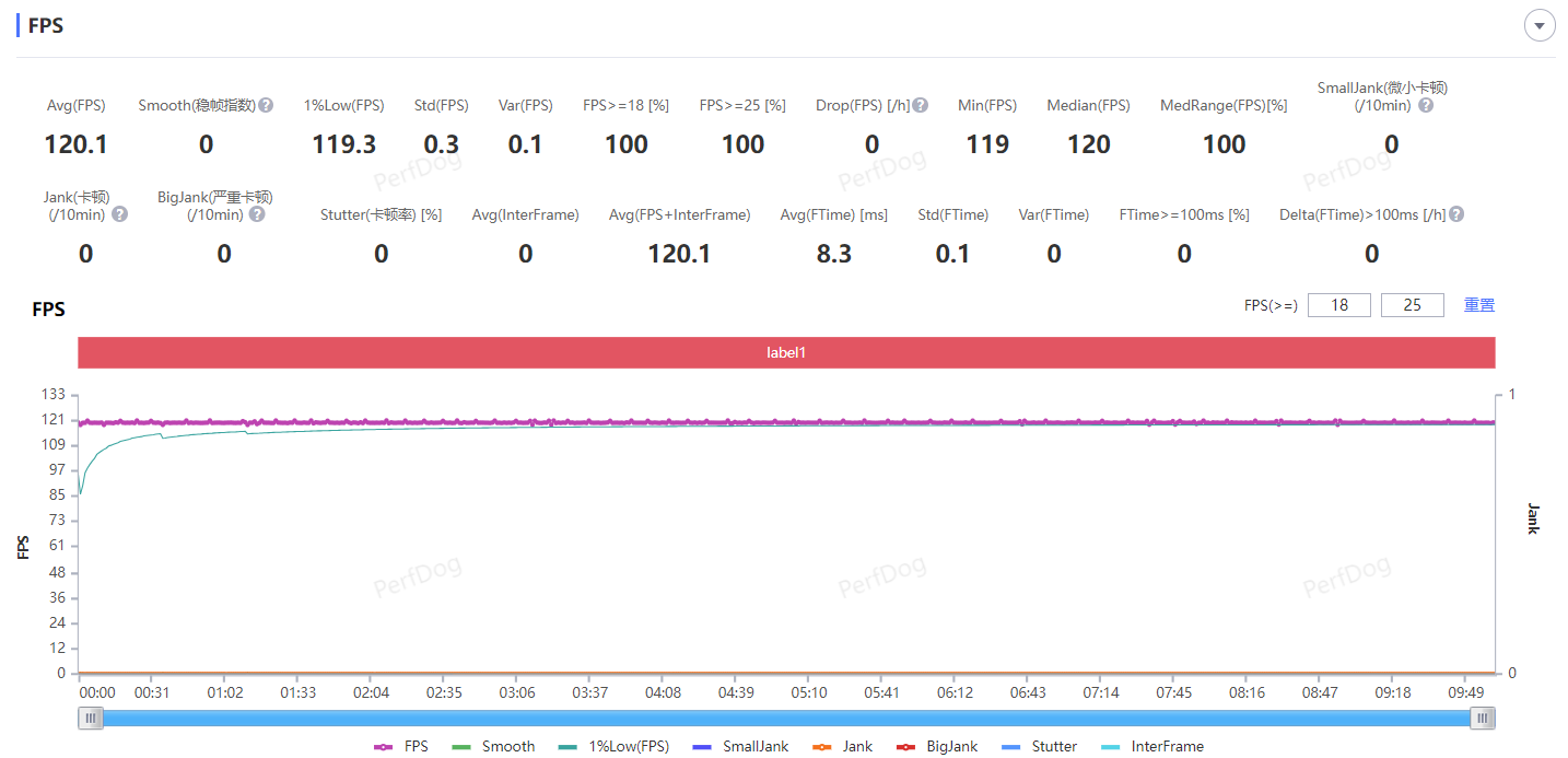 ▲而在游戏性能优化上,一加Ace 3 Pro最为亮眼的表现是可以实现《原神》全程120帧的原生画质体验,这是目前安卓阵营里独此一份的表现。而且小伙伴们看PerfDog的帧率曲线也能发现,帧率稳定性很好,没有出现过任何一次卡顿。