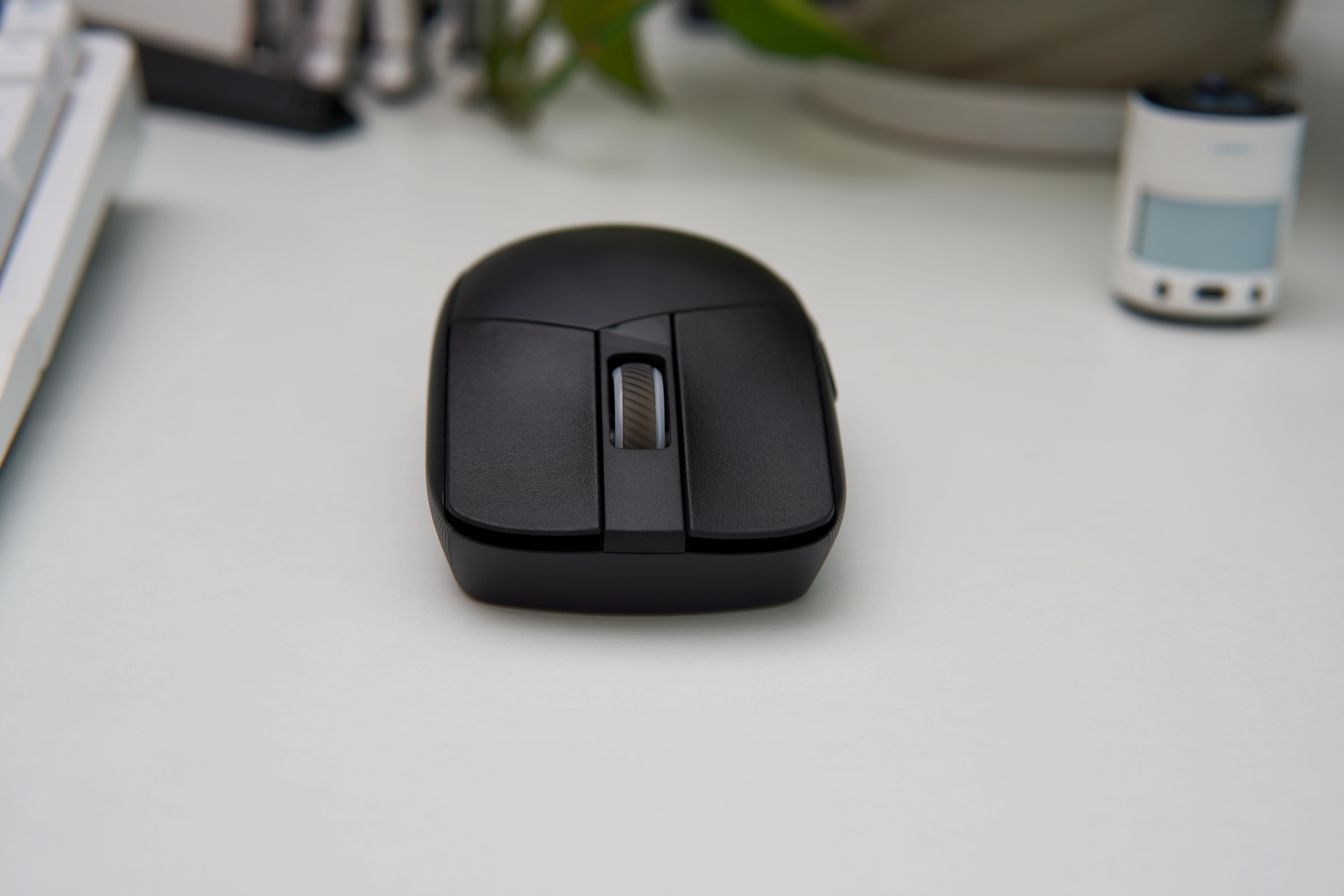 ▲ROG影刃3无线版的前端设计主要包括三点,一是前端两侧曲线调整得不容易夹手;二是滚轮位置做了前移处理,因而更容易实现滚动操作;三是左右按键采用凹槽设计,可以引导手指点击位置居中,从而实现更为省力、灵活的鼠标使用体验。