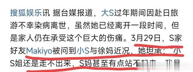 徐妈,这位曾经坚强乐观的长辈,一直以来都是家庭的顶梁柱。她看着两个女儿在娱乐圈摸爬滚打,从青涩稚嫩走向成熟稳重,其中倾注了无数的心血与关爱。大S和小S的每一次成长、每一个成就,都让她倍感骄傲。然而,命运却如此残酷,大S的突然离世,如同一道晴天霹雳,彻底击垮了徐妈的精神防线。