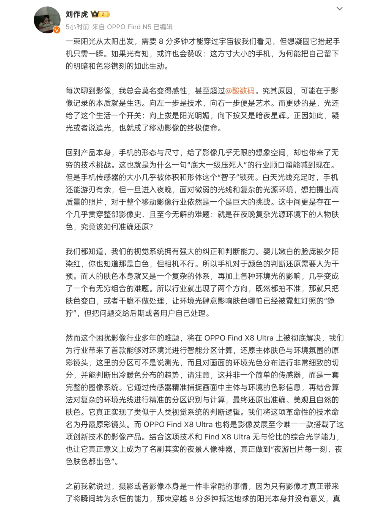 据悉Find X8 Ultra的影像表现很有惊喜,尤其是夜景人像方面,得益于丹霞原彩镜头的加入,以及行业首创分区色温感知技术,在复杂光源下依旧能还原主体人物的肤色。按张老板说法“这个困扰影像行业多年的难题,将在 OPPO Find X8 Ultra 上被彻底解决”。