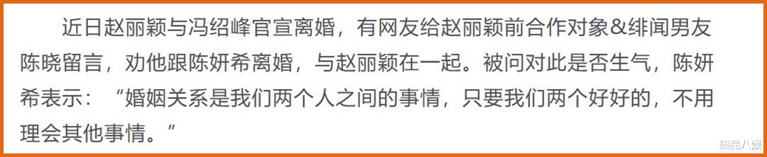 陈妍希说:“婚姻关系是自己和陈晓两个人之间的事,只要他俩之间好就行,不用理会其他事情”,转头就被定义为“绿茶”。