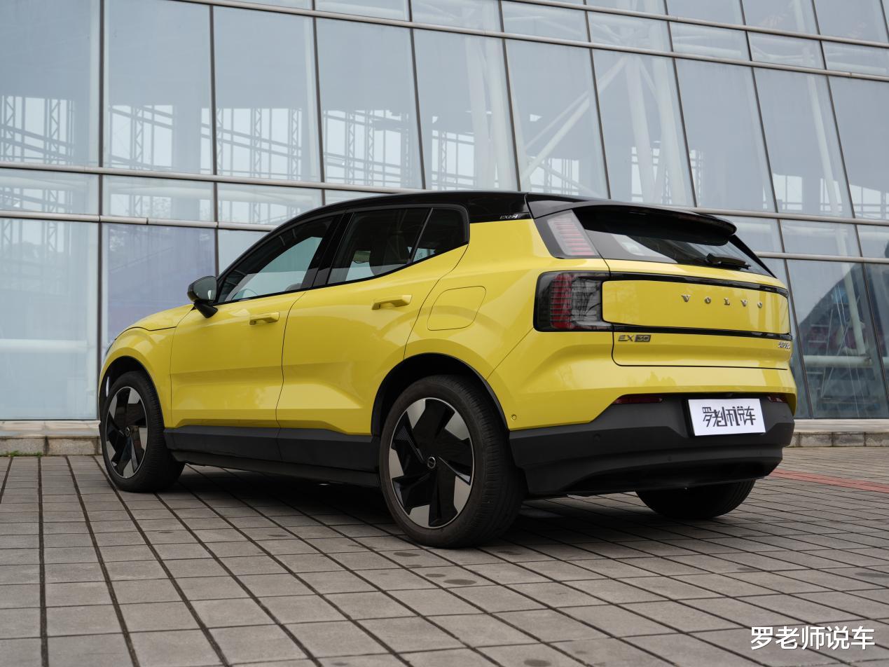 老规矩,咱们先来聊聊外观。沃尔沃EX30有着4233/1838/1555mm的三围尺寸,轴距达到了2650mm,别看它的定位是小型SUV,但由于采用了四轮四角的设计(即四个车轮尽可能靠近车辆的左前、右前、左后、右后),所以车辆的内部空间利用率还是相当不错的。颜值方面,沃尔沃EX30的外观和它其余几个师兄弟一样,散发着浓浓的北欧极简风味,前脸部分采用了象征着沃尔沃家族化设计的雷神大灯,令人看上去有一种眼前一亮的感觉。尾部方面,它采用了上下分体式尾灯,上方为沃尔沃常用的竖型尾灯,而下方尾灯则呈现出环形型结构,两者组合起来视觉辨识度还是不错的。总的来说,沃尔沃EX30的外观我认为属于同级别里比较优秀的类型,你们觉得呢?