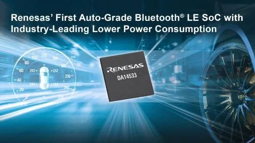 3月25日,瑞萨电子发布首款符合AEC-Q100标准的车规级低功耗蓝牙SoC DA14533。该芯片集成射频收发器、Arm M0+内核及安全模块,支持蓝牙5.3与-40℃~105℃宽温域,传输功耗仅3.1mA,休眠模式低至500nA。