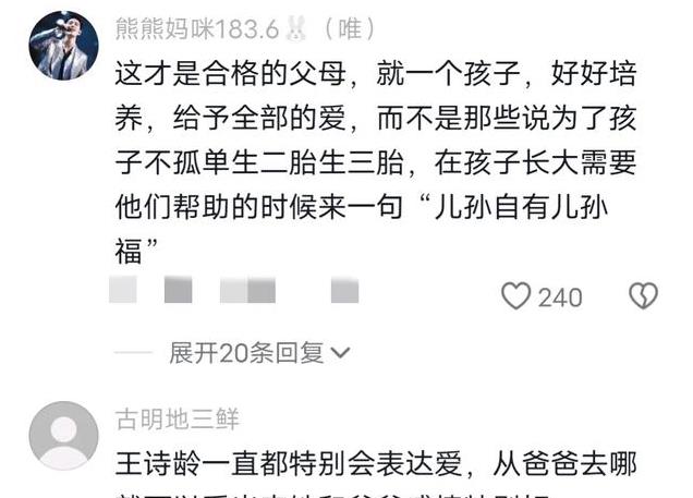 很多网友表示女方的婚姻是成功的,因为对于孩子来说,有一个好爸爸。有的也认为两人是合格的父母,从王诗龄小时候就能看出父女俩感情特别好,这样的家庭氛围令人羡慕。