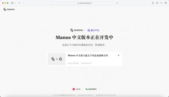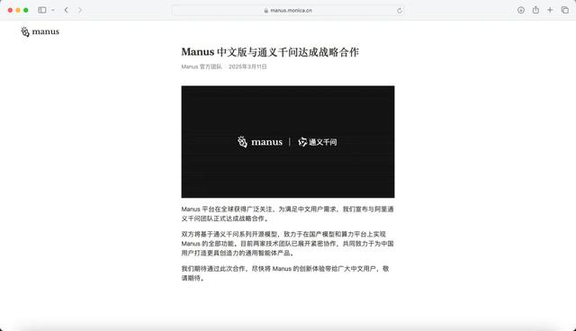 目前,Manus中文版与通义千问达成战略合作,将基于通义千问系列开源模型,致力于在国产模型和算力平台上实现Manus的全部功能。