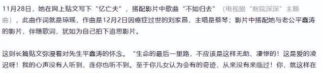 11月28日那天琼瑶在网络上写下了“忆亡夫”。