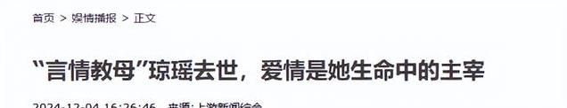 上游新闻(“言情教母“琼瑶去世,爱情是她生命中的主宰 2024.12.04)