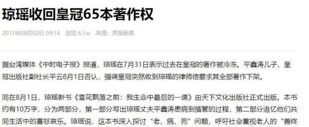 2017年在平鑫涛中风之后平云就接手了皇冠出版集团。