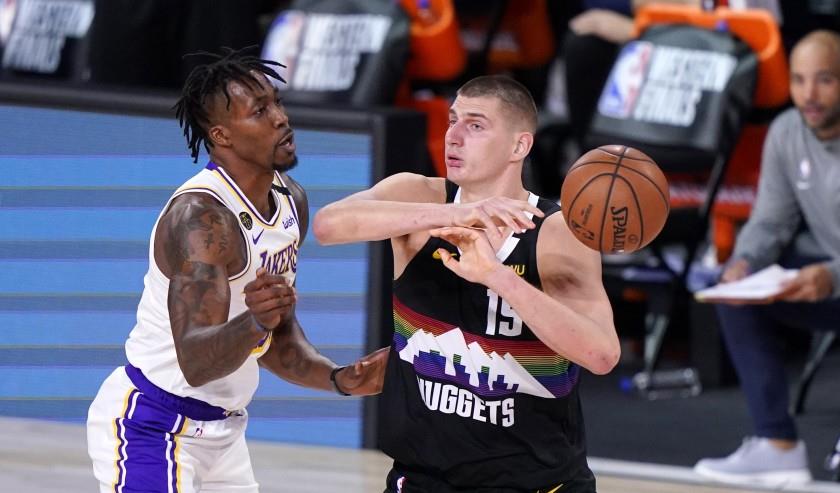 湖人与爵士和快船不同,他们在前场的优势巨大,浓眉、霍华德、麦基在禁区的攻防那没得说,三个人的护筐能力都在联盟精英级水准,浓眉本赛季入选了一防,霍华德是3届的最佳防守球员,这三人有很多共同点,比如身高臂长,弹跳出色,移动速度都还不错,约基奇也不好对付,一个重型的诺维斯基,还有如此出色的传球能力,但总的来说,湖人的前场要比爵士和快船豪华豪华的多。
