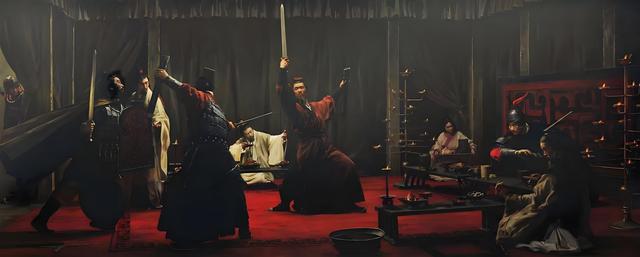 樊哙的举动,把项庄震慑住了,无人再舞剑,大家继续喝酒。此时,项王也开始想心事,气氛开始沉闷。