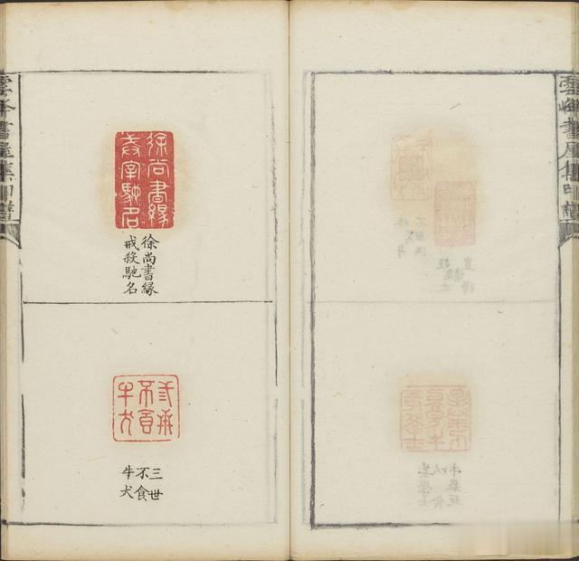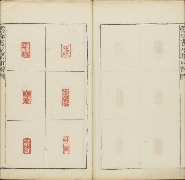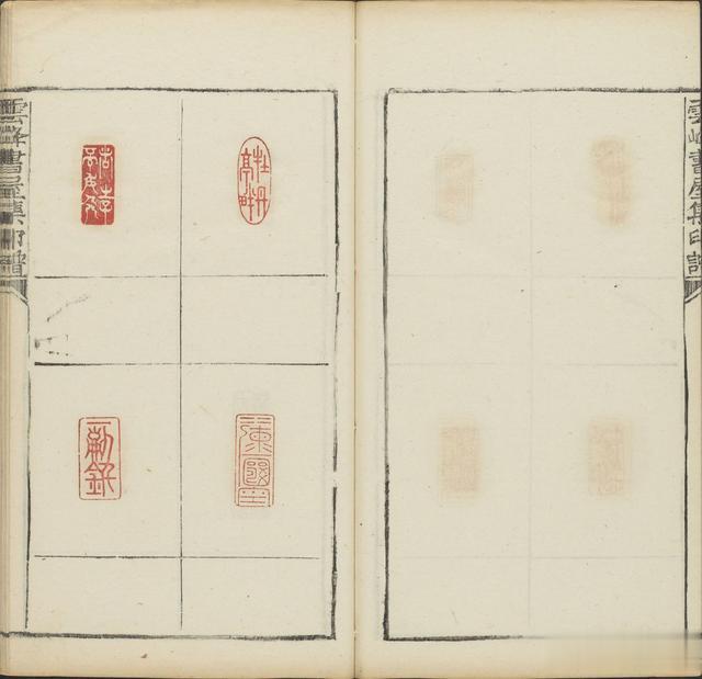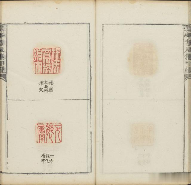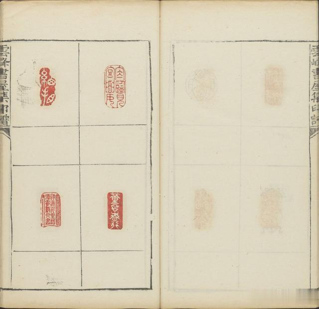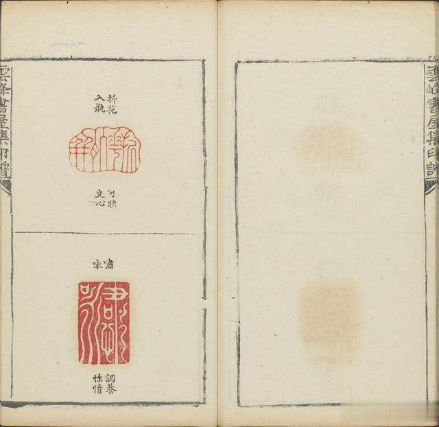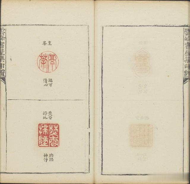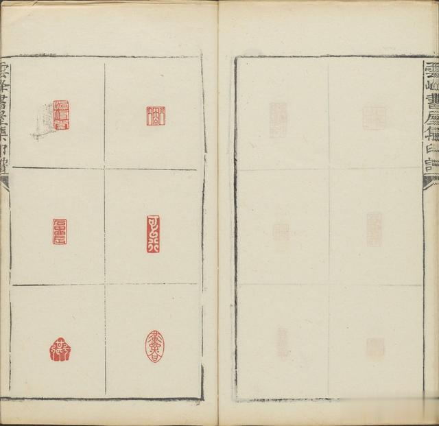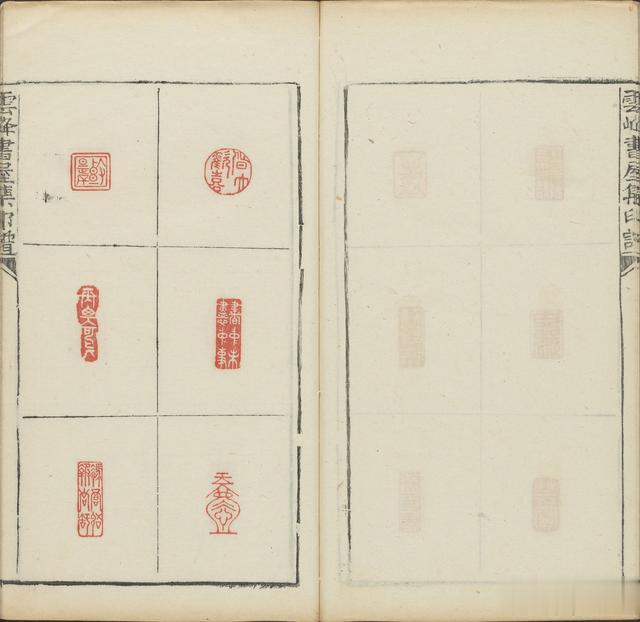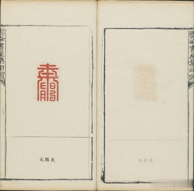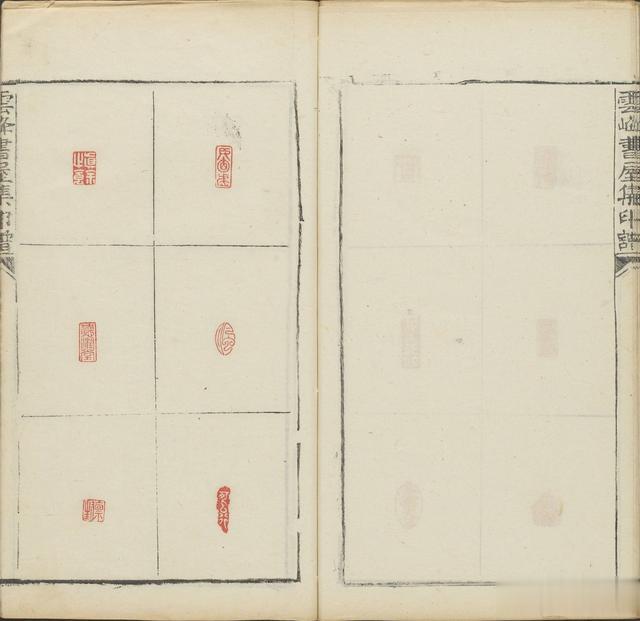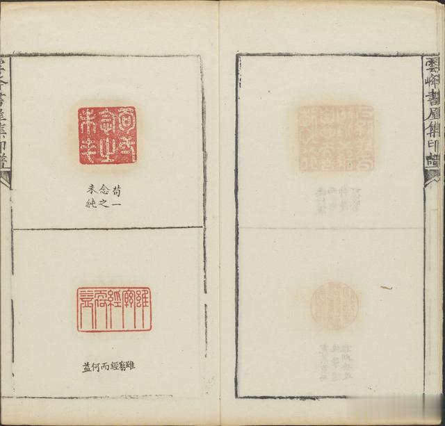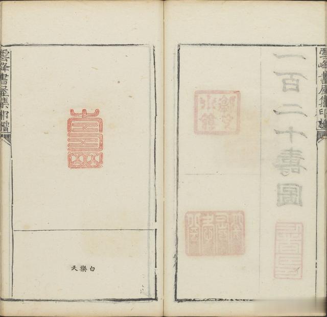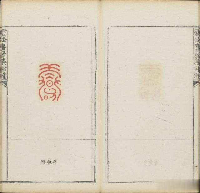 此《云峰书屋集印谱》由清代赵锡绶篆刻并编。全套共八册,包含:私印、法古篆文、文昌帝君宝训、醉翁亭记、居官要览、三多九如、三蕉遗韵、西湖拾景、印章集锦、一百二十寿图、阳明先生读书十八则、关圣帝君谟训等题材的自刻印作。此为清嘉庆九年雍阳德润堂钤印本。
