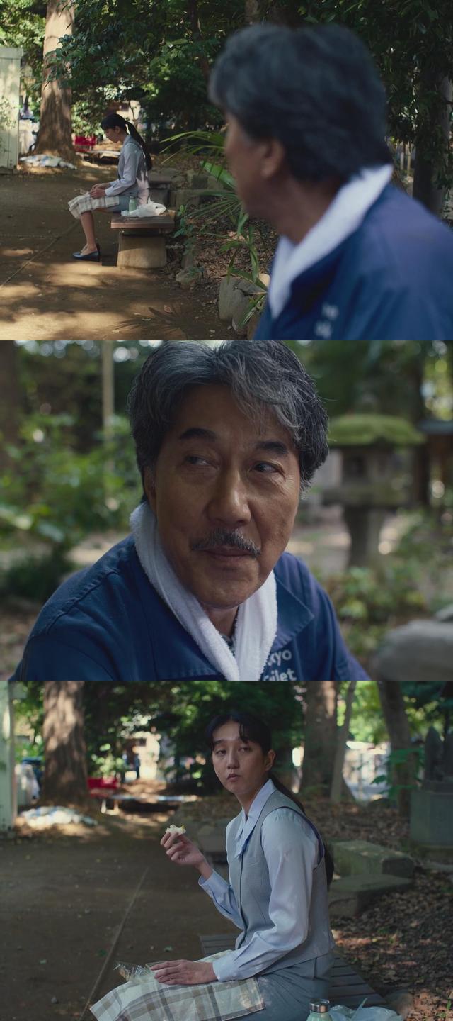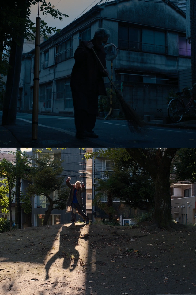 以上这些“情节”,占据了全片四分之三的篇幅。此外,文德斯还简要勾勒出平山与唯一同事(及其女友)的关系和他的家庭背景。