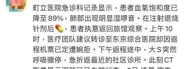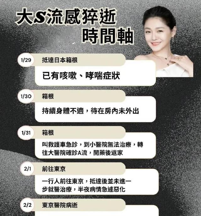 尽管医疗团队建议留院观察,大S仍执意返回旅馆,最终在途中病情急剧恶化,再次折返就医时已经无力回天。