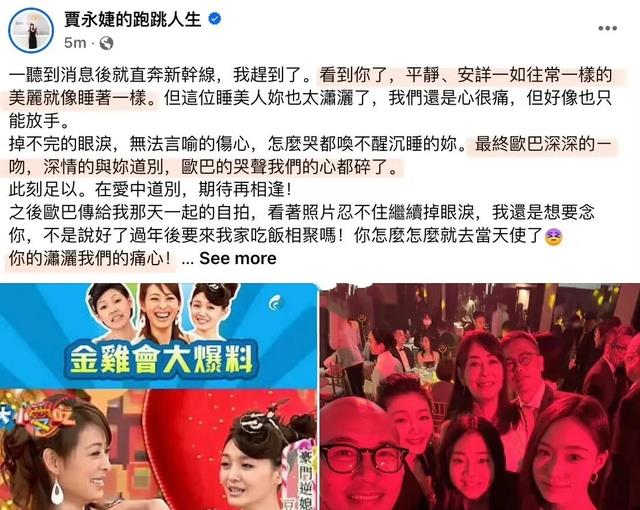 大S临终前的情景被好友贾永婕描述得十分感人,安静地躺在病床上,像睡美人一样,具俊晔的深情吻别更是让人动容。