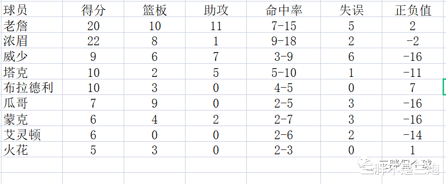 简单看看数据吧,其实都没有太多分析的地方。唯一可以拿出啦做文章的就是湖人今天的失误!!!