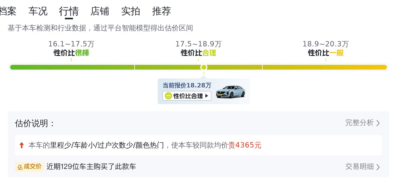 市场行情也是影响二手车定价的重要因素。目前,这款车型的二手车市场价格大约在18.22万至21.72万元之间。具体售价会因车辆状况等因素而有所差异。结合这辆车的车况,18.28万的价格还是比较合适的。