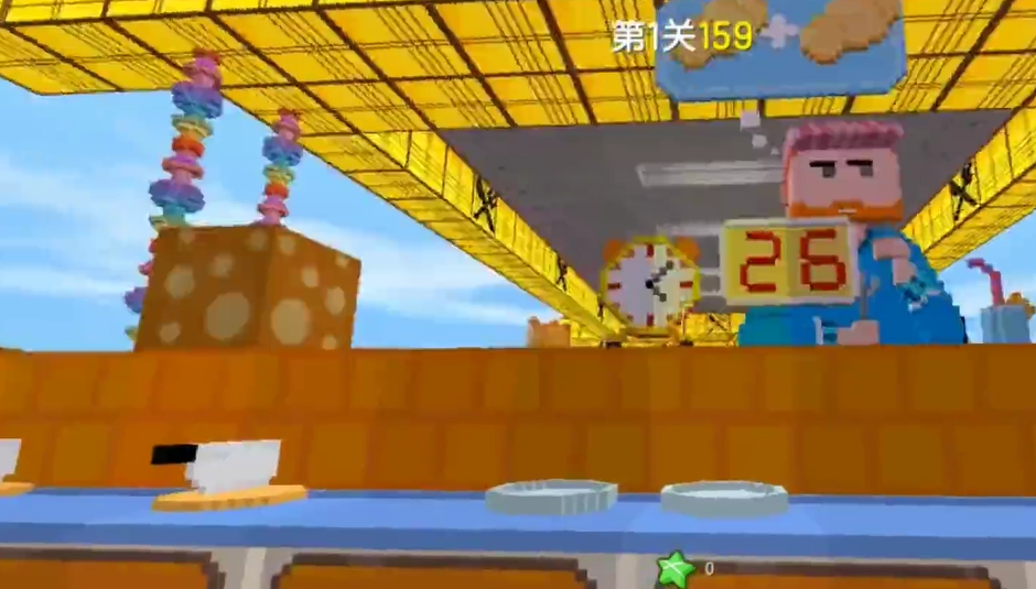 然后再把土豆放在盘子里,最后端到传送带上。伴随着棕色胡子大叔头上的两个土豆变成了两个对号,他也露出了满意的表情。紧接着又来了一个大叔想吃牛排,这牛排可是好东西,但是这怎么没法切呢?难不成要直接放在盘子里给客人吗?