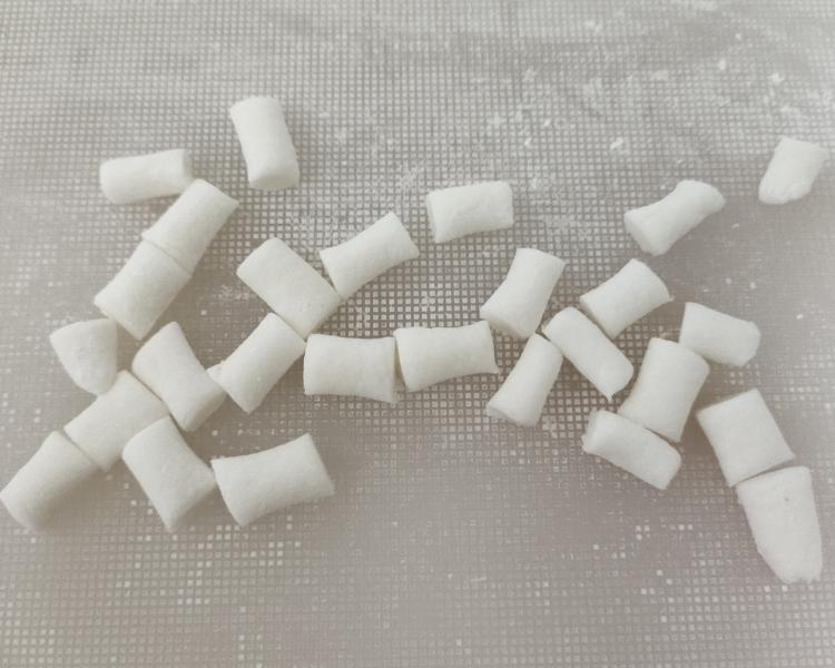 将面团分成小块,搓成细长条,再切成均匀的小段。把小段面团搓成圆球状,这就是阿达子的雏形。