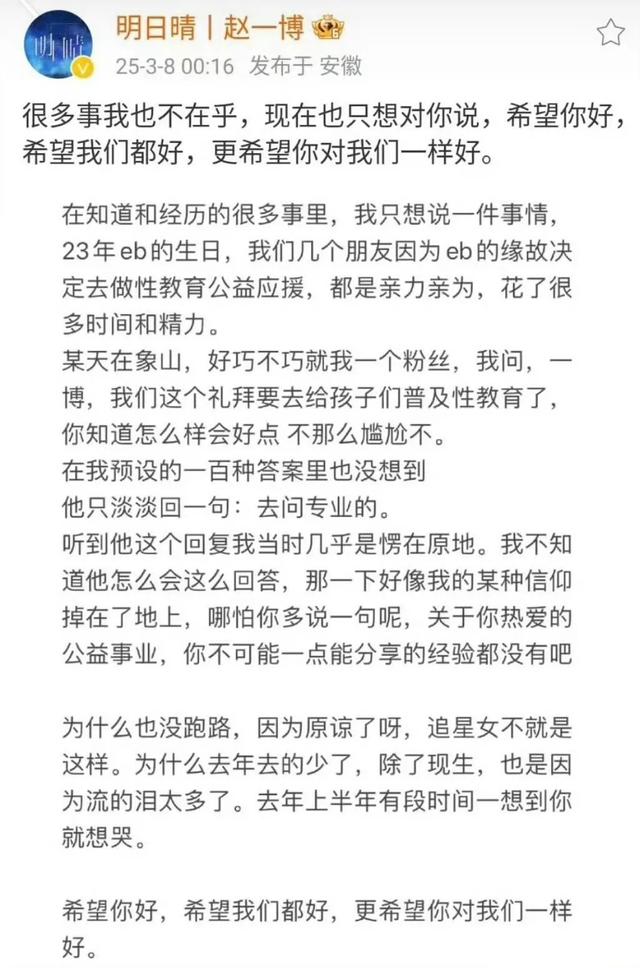 此次事件,无疑为赵一博乃至整个娱乐圈敲响了警钟:在流量为王的时代,人设虽能一时吸引眼球,但唯有真诚待人、尊重粉丝,方能赢得长久的信任与支持。