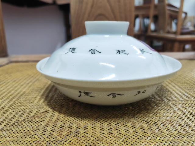盖子和底子上都书有隶书“饮和食德”四字。“饮和食德”的典故主要来源于中国古代的经典文献,"饮和"一词出自《庄子·则阳》,原文是“故或不言而饮人以和”,意指饮食应该带给人和谐、舒适的感觉。"食德"则是出自《周易·讼》中的“六三,食旧德”,意味着饮食要符合道德规范,享受先人的恩泽。"饮和食德"强调的是饮食过程中的和谐与道德。