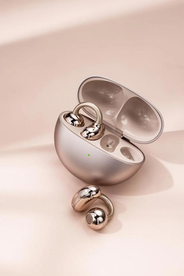 值得一提的是,华为FreeClip耳夹耳机玫瑰金延续了其系列的标志性C形桥设计,这种设计不仅在视觉上极具美感,更结合了人体工学原理,大幅提升了佩戴的舒适性和稳固性。其内置的镍钛记忆合金具备高度弹性和耐用性,即使长时间佩戴也不会对耳部造成负担,在运动场景下依然稳固贴合,无惧剧烈动作。这种精巧的设计从根本上解决了传统TWS耳机在舒适性和稳定性方面的痛点,进一步巩固了华为在开放式耳机行业中的领先地位。