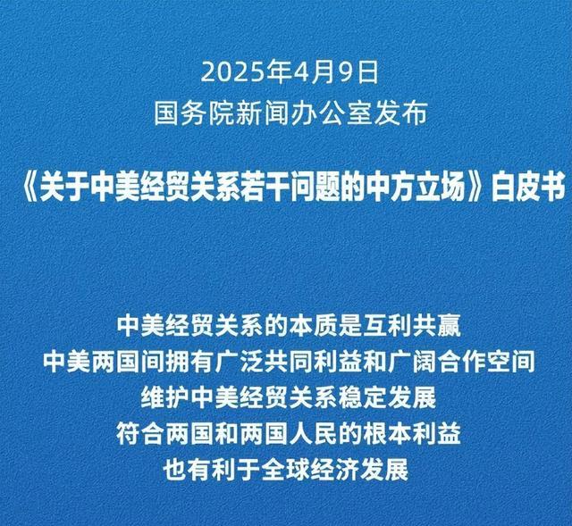 4月9日,中国又有了个大动作,发布了《关于中美经贸关系若干问题的中方立场》白皮书,白皮书里强调,中美之间就应该互利共赢。
