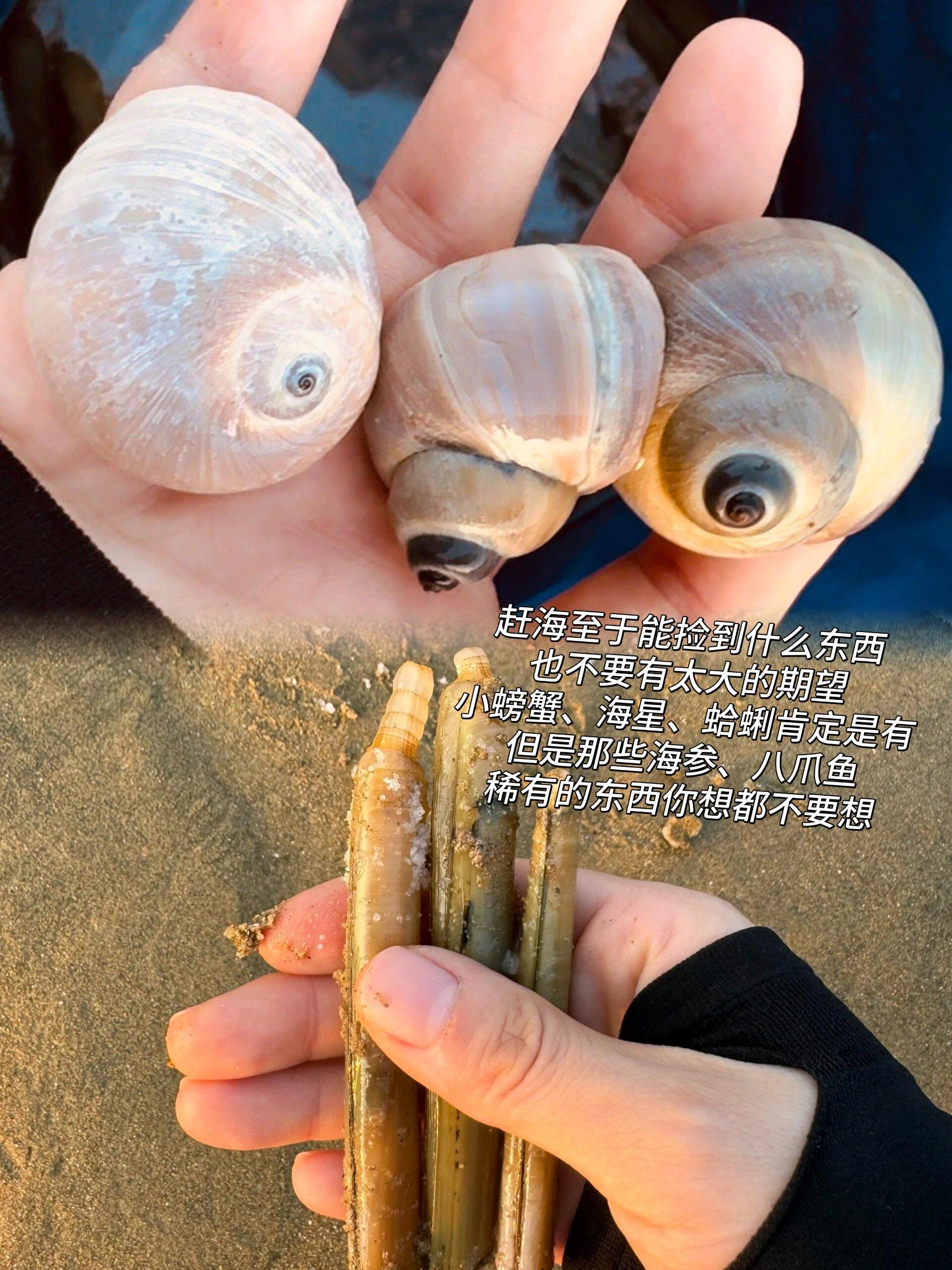 ⚠️赶海至于能捡到什么东西,也不要有太大的期望,小螃蟹、海星、蛤蜊肯定是有,但是那些海参、八爪鱼稀有的东西你想都不要想😢