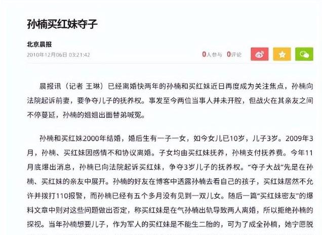 这似乎是对买红妹多年付出的一种补偿。然而,仅仅一年之后,孙楠就反悔了,他将买红妹告上法庭,试图争夺儿子的抚养权。