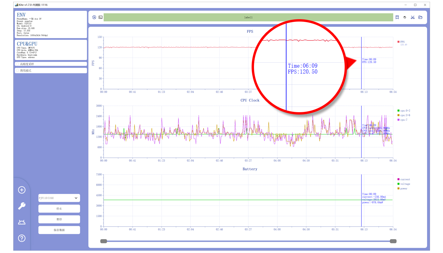 而《王者荣耀》中,一加Ace 3V也能满足120帧运行,即便是团战也仅是1 FPS下降,随后又回到120 FPS。