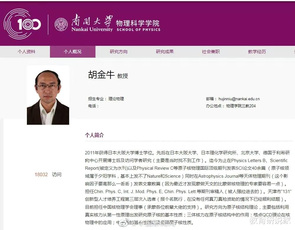这两方面,都和学术无关,也和教育无关。所以我觉得,这种走红或许并不是人家胡教授所想要的。当然,并非每个人都懂物理,我们以这种方式打开了对胡教授的认知,也是一种缘分。