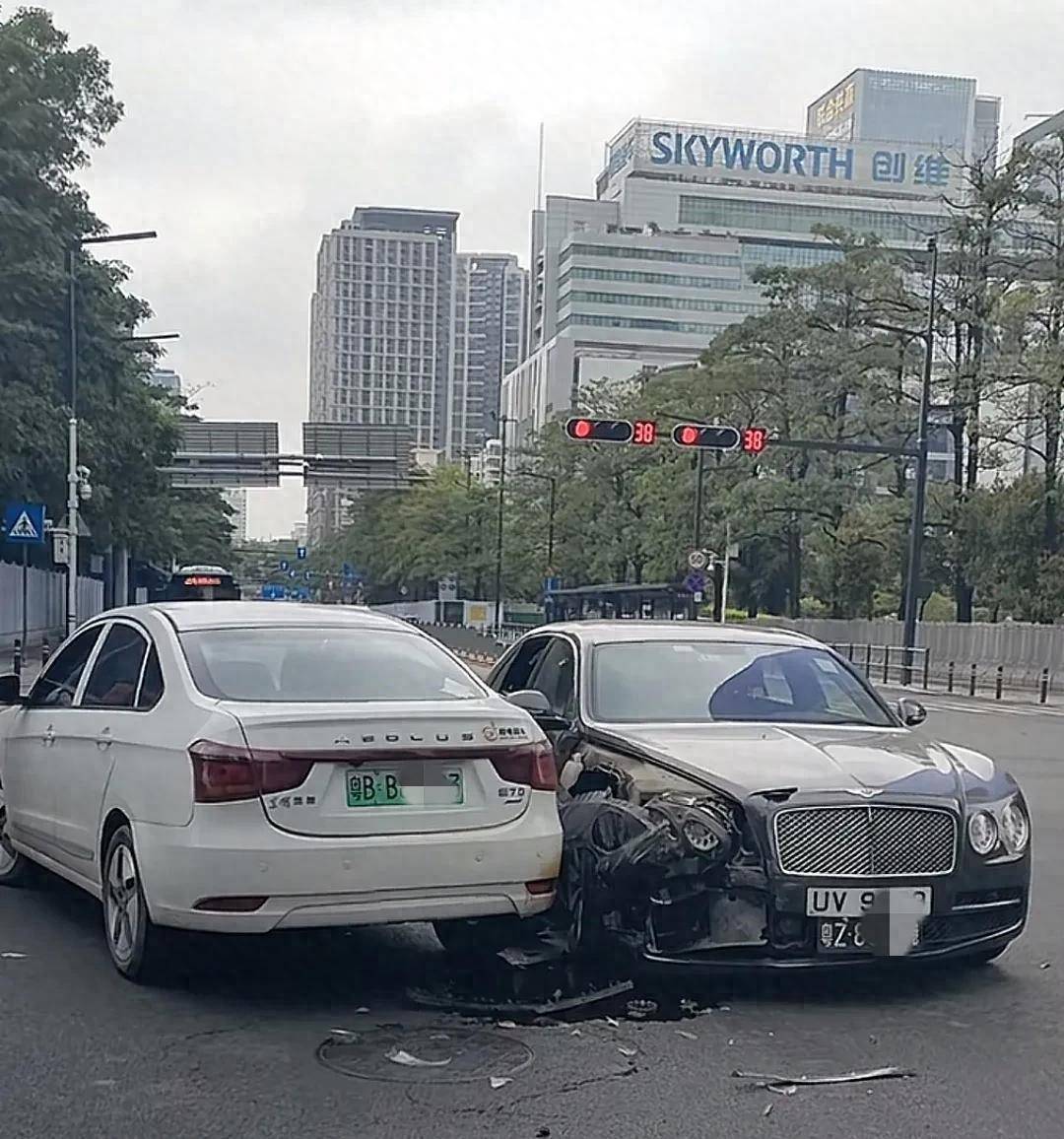 4月19日中午,深圳街头一辆网约车和挂着香港车牌的宾利轿车撞了个正着。