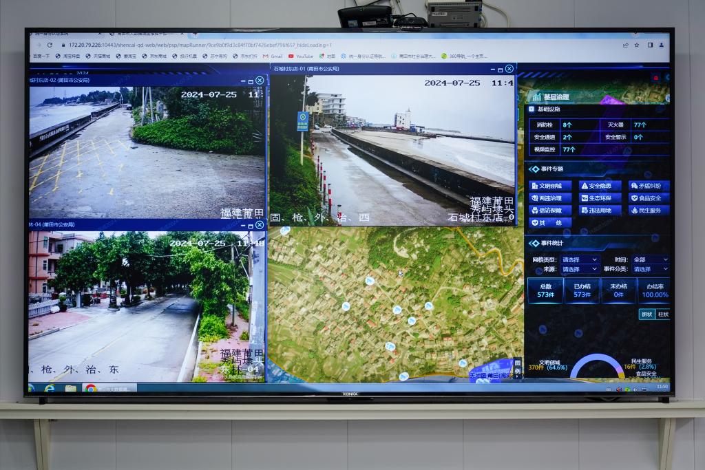 25日中午,莆田市秀屿区埭头镇石城村数字平台显示的实时视频信息。肖和勇 摄