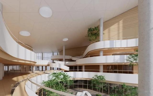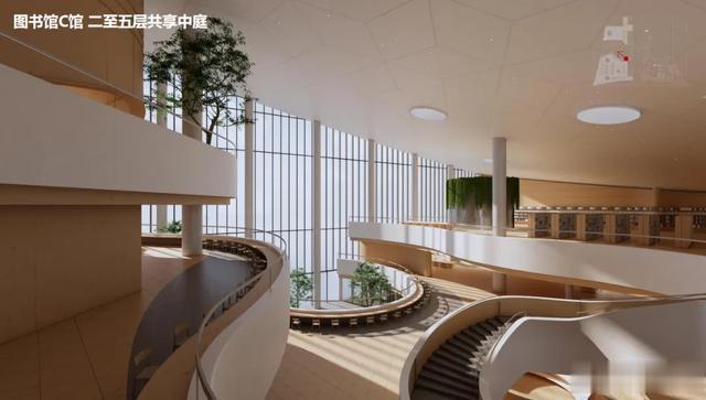 建筑分为地下两层,地上A、B、C、D四个单体建筑,即将率先开放的西安图书馆项目,分布在C、D馆,总面积7.6万平方米。