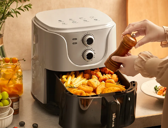 推荐选择具备360°热风循环加热功能的空气炸锅,这种设计能确保导流效果佳、升温迅速、温度分布均匀,且温控精确。相比之下,功率虽高但缺乏导流设计的炸锅容易导致加热不均,从而烤焦食材并产生有害的丙烯酰胺。