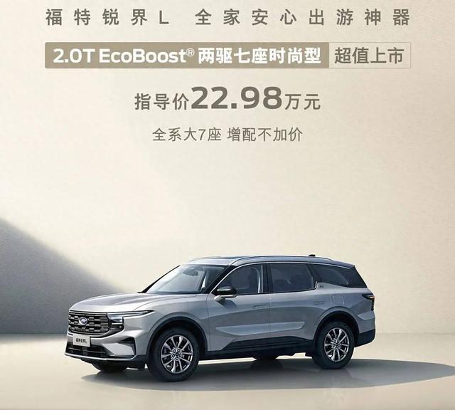 8月底,福特锐界L上市了一款新版本,定价22.98万元的两驱七座时尚型,作为一款车长5米的合资中型SUV,这个价格有点香,我们也趁着新车到店,来解析一下这个版本到底性价比如何。