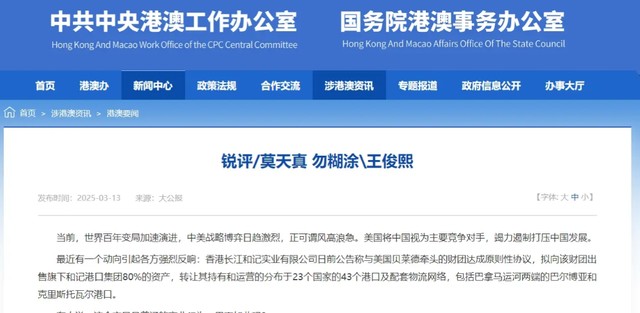 环球时报:2025年3月17日,《香港长和出售43个港口遭质疑》