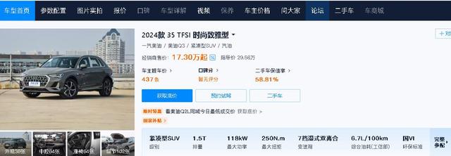 在豪华SUV市场,“降价”永远是最具争议的杀手锏——有人欢呼“薅羊毛”,有人质疑“羊毛出在羊身上”。当奥迪Q3以最高降幅12万元的终端优惠杀入20万级市场时(2024款35TFSI时尚雅致型在个别地区甚至降幅超过12.58万),这场价格战的背后究竟是德系豪门的诚意让利,还是品牌溢价泡沫的破裂?面对国产新能源的围剿,这台曾经的“都市精英座驾”能否用真金白银的折扣重获消费者芳心?