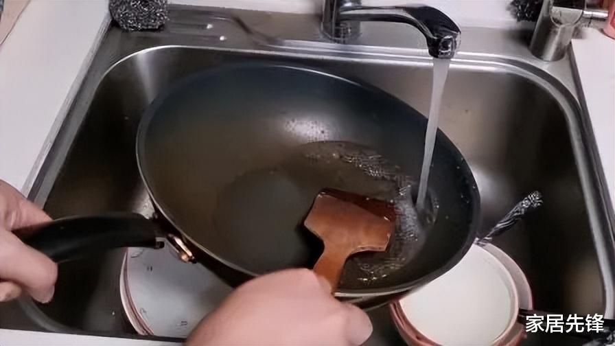 我们炒完菜以后千万不要先洗锅,而是先将锅具从灶台上端下来,让他自然冷却三五分钟,然后我们再用温水来清洗,如果家里的锅具是不粘锅或者是珐琅锅,千万不要用钢丝球,可能会破坏表面涂层,如果是铁锅的话倒无所谓。