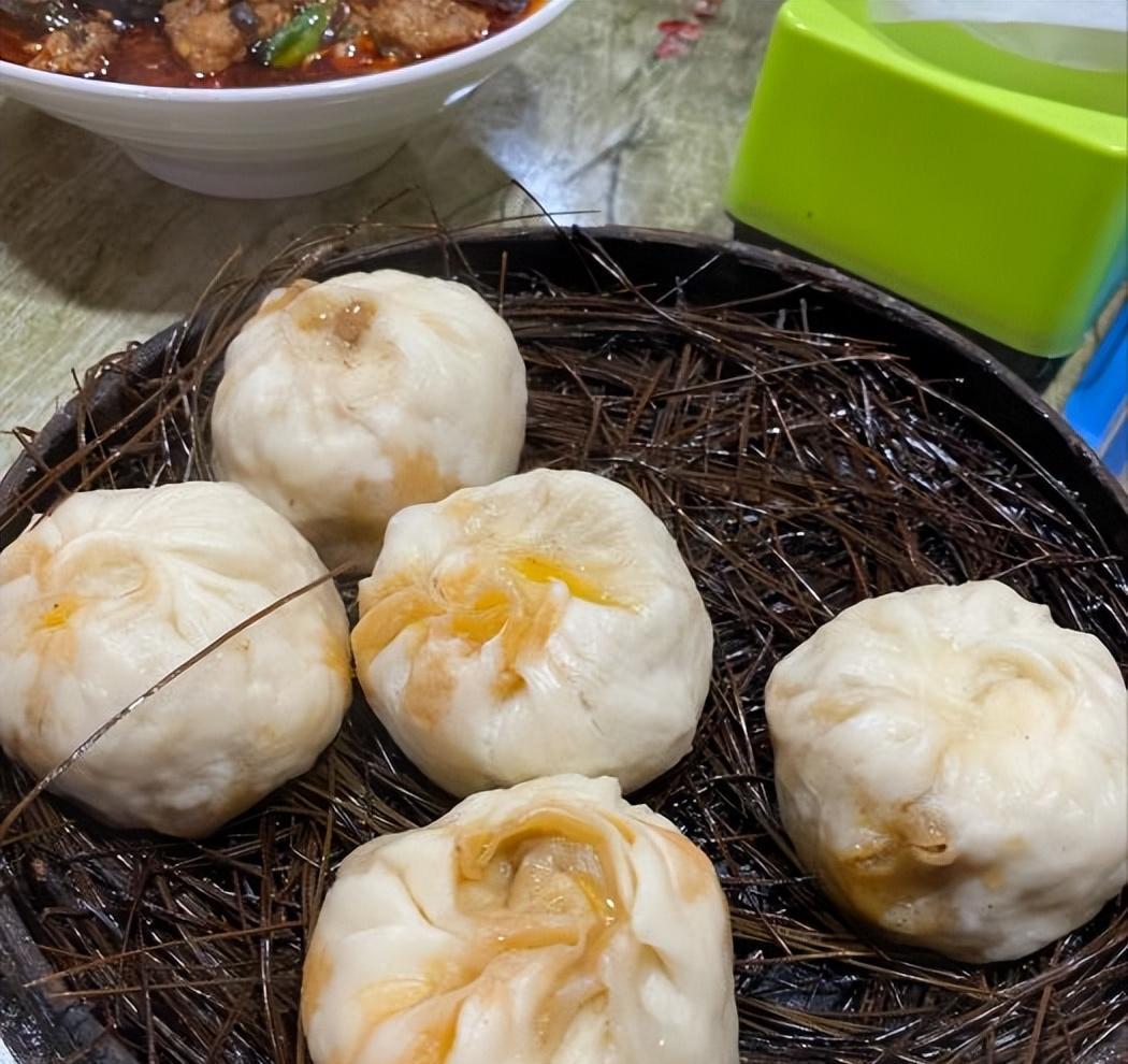 这个鸡公面的价格很实惠,可以选择面条米线或者面块。加一个卤蛋再配一碗香甜的豆浆才13元,多两块钱的话,可以吃一份鸡公面,还有一笼包子。这个包子是松叶垫底,自带清香味,一笼有六个,有酱肉和鲜肉两种口味,酱肉偏甜鲜肉肉香味很足,皮薄肉厚,油脂都浸透了,一口下去,真是滋味无穷,陆振宇从来没有吃过这样的面条和包子,直呼涨见识了。