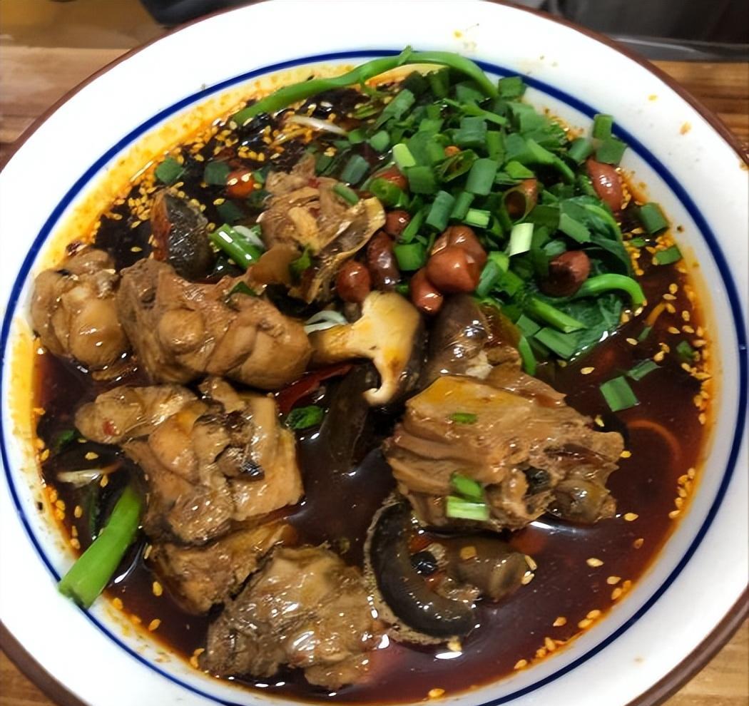 这家店主要是卖重庆小面的,还有饺子包子啥的,品种多适合各种人群。招牌是鸡公面,鸡公就是雄鸡,味道是红烧口味,做法和山东的炖鸡有点相似,但是味道更香辣,煮得很入味,鸡肉烧得刚好一点也不塞牙,香浓可口而且给得还蛮多,还配了香菇,味道更鲜。面条里面还有不少白菜,绿油油的很解腻。