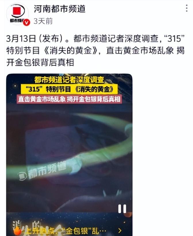2025年3月15日,河南都市频道一则《金包银骗局调查》节目引爆网络,视频中"黑心商家"大谈"典当后卷款跑路"的猖狂言论,让非遗传承人陈火龙的家族店铺遭遇87%订单暴跌。