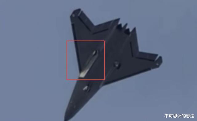 换张图片瞧瞧,虽然还是不太清楚,但能看出侧面墙壁不平整。这么看的话,侧面弹药舱可能真的存在。想想当时这飞机跟歼-16一起飞,结果它比歼-16还要大一些。机体这么大,肚子也更宽,虽然和歼-36比起来还差点儿,但和歼-20比,宽度基本差不多。所以,侧面弹药舱应该是有位置的。不过,没有高清图片,咱也只能这么说,不能说得太死,免得被打脸。
