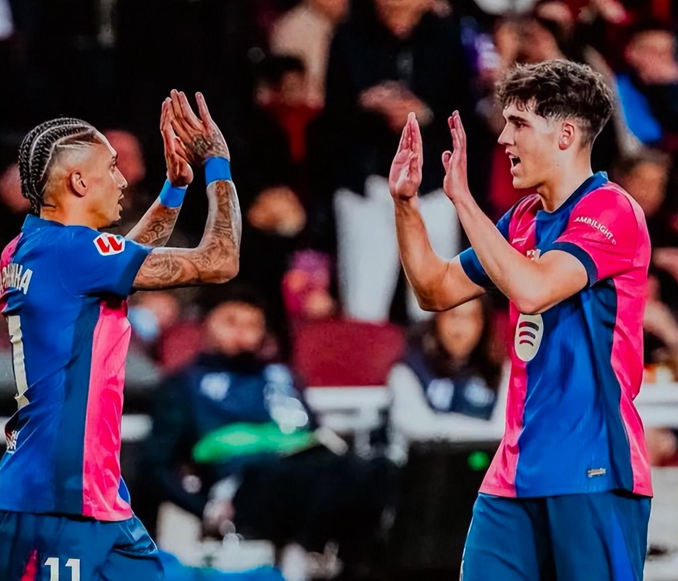 这还没完,第41分钟,拉菲尼亚再次角球助攻,伊尼戈头球破门,巴萨竟然反超了!
