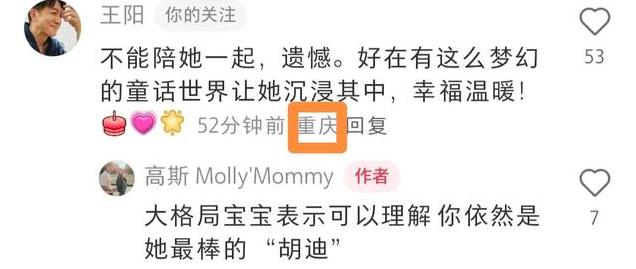 在评论区里,王阳留言:不能陪她一起,遗憾。好在有这么梦幻的童话世界让她沉浸其中,幸福温暖。