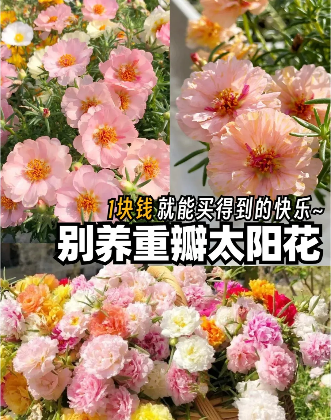 要是想让花开得更旺,可以掐掉枝条尖儿,这样分枝就多了,花也就更多。花谢了别着急,修剪掉残花,补点花肥,还能开第二茬呢!现在市面上还有重瓣太阳花,花瓣层层叠叠的,像小玫瑰一样,开起来更是漂亮。