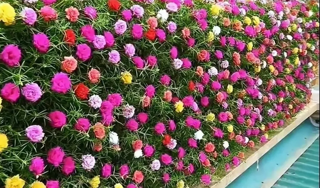 他用了差不多100个2升装的饮料瓶,在墙上整整齐齐地挂了4层,每层10来个。你们猜咋样?这些太阳花从扦插到开花,才用了一个月!那花开得,跟一面彩色的帘子似的,看得我都心痒痒的。