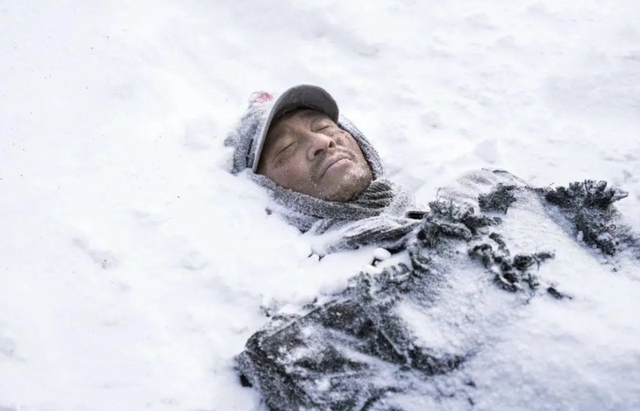 另一场在冬天被浇冷水的戏份,他硬是被12桶凉水一桶桶地浇在身上,却一声没吭。