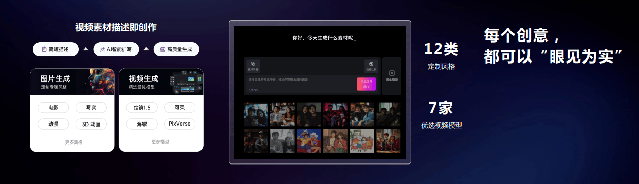 流量的获取、效率的提升、品质的保障以及持续的创新,成了创作者们必须精心权衡的要素。面对这一高难度任务,他们迫切需要一种全新的创作范式,以加速创意落地的过程,并最大化地释放内容的影响力。
