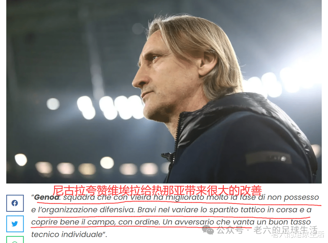 这个赛季维挨拉的执教其实对热那亚的改善很大,他在球员时期就是同时代最优秀的中场球员之一,上场踢完卡利亚里,对手的主教练尼古拉就评价热那亚在无球阶段和防守组织方面有了很大的改善。