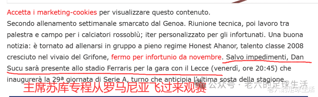 就连穆尔特多地区的领导们都来现场观看了热那亚的训练,球队主席苏库也专程从罗马尼亚飞过来观看本场比赛。俱乐部也为球迷们准备了大巴,方便让他们进入球场。
